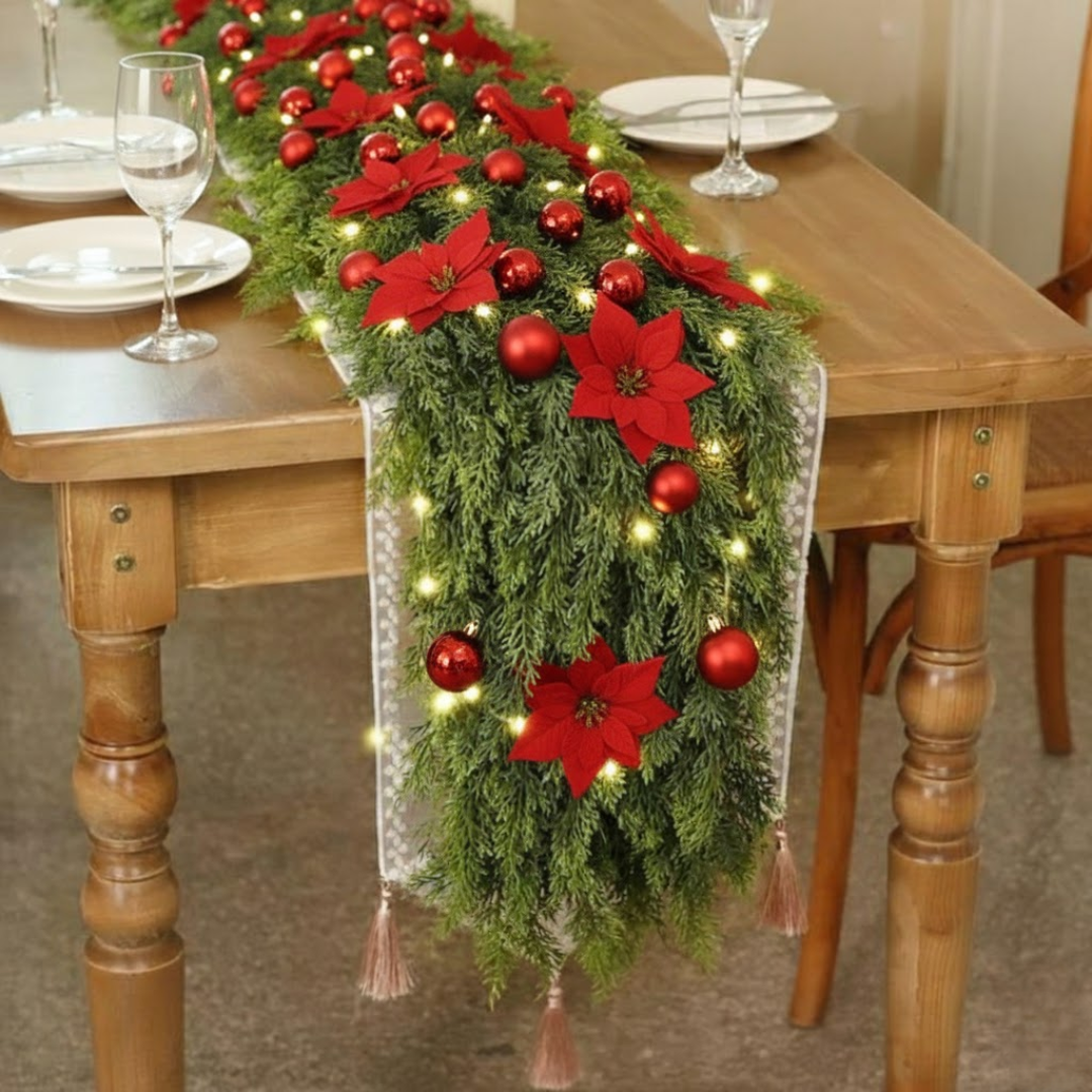 Die Girlande verleiht jedem Ort einen festlichen Zauber – natürlich, warm und elegant. Ideal, um dein Zuhause in ein winterliches Weihnachtsparadies zu verwandeln.
